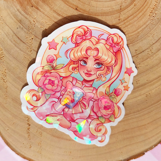 Moon girl \\ Vinyl Holographic Sticker